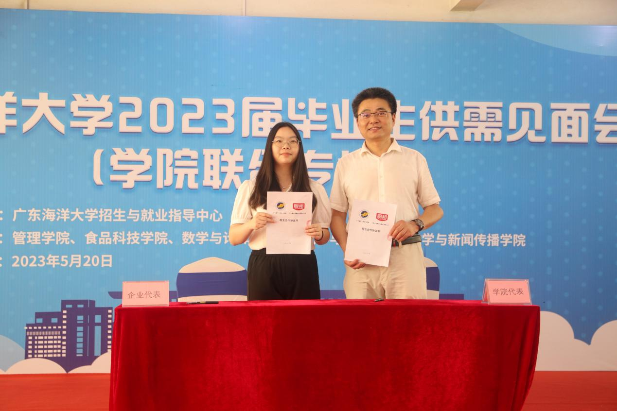校党委副书记林晓敏致开幕辞。他简要介绍了学校的发展情况与2023届毕业生的就业情况,强调“国以人兴,政以才治”,对各学院、用人企业、毕业生提出了三点希望:一是希望各学院进一步深化校企合作,积极对接企业人才需求,搭建好供需双方的桥梁,助力开云官网毕业生高质量就业;二是希望企业为高质量发展储备高质量人才,充分挖掘学生的潜力,最大限度招收接纳开云官网毕业生,用心用情用力用好人才,留住人才,实现经济发展和扩大就业的并举双赢;三是希望毕业生转变观念,树立正确的就业观,既要仰望星空,更要脚踏实地,及时适当调整就业预期,先就业再择业,勇于到企业一线和艰苦的岗位去锻炼,敢于到新的行业去打拼,以诚实的劳动和出色的业绩成就人生价值。随后,深圳市讴旎科技有限公司总经理、开云官网优秀校友吴宏杨作为企业代表作了发言。他感恩母校的培养,结合自身奋斗的历程深刻阐释海大精神,并勉励求职的学生要积极就业,投身企业一线贡献青春力量。开幕式上,管理学院、食品科技学院、数学与计算机学院与部分参会企业签订了共建教学实训就业基地协议,并进行了授牌仪式。