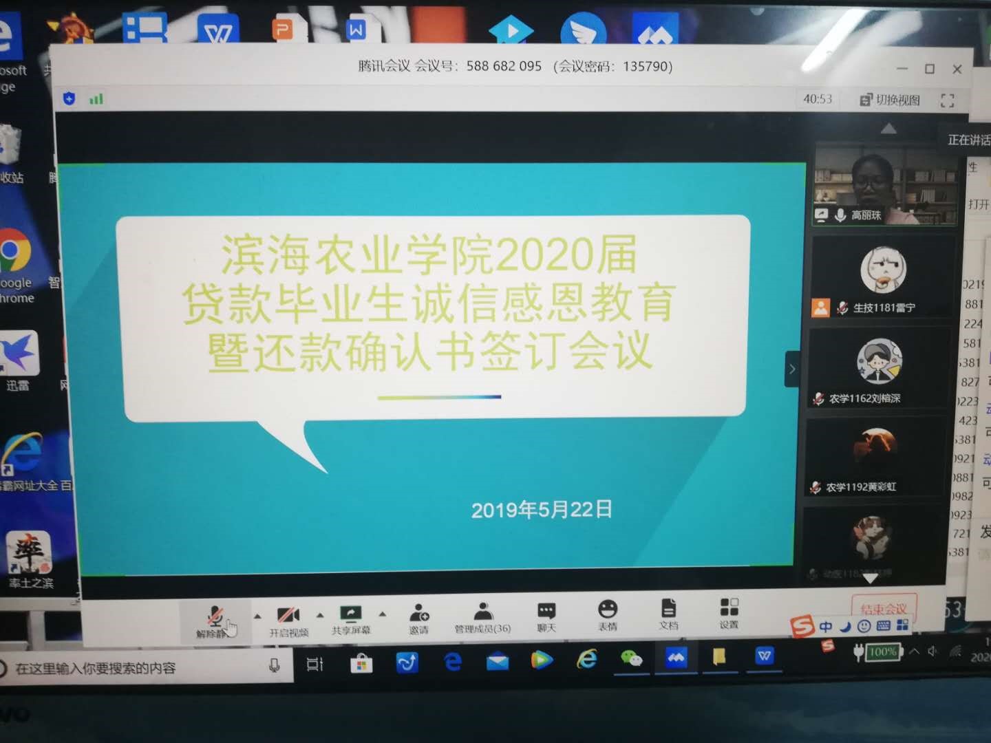 为提高贷款毕业生的诚信感恩意识,帮助贷款毕业生了解掌握还款程序,5月22日晚,滨海农业学院召开2020届毕业生还贷工作视频会议。会议由学院辅导员高丽珠老师主持,学院团委、学生会、勤工部干部及30余名贷款毕业生参加了会议。