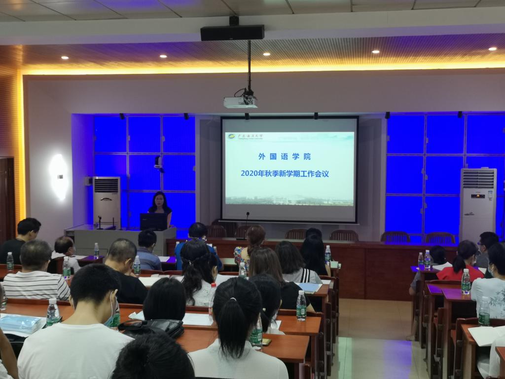 8月30日上午,外国语学院在霞山校区图书馆报告厅召开新学期工作会议,部署安排新学期疫情防控及其它重点工作,学院党政领导及全体教职工参加了会议,大会由学院院长郭遂红主持。