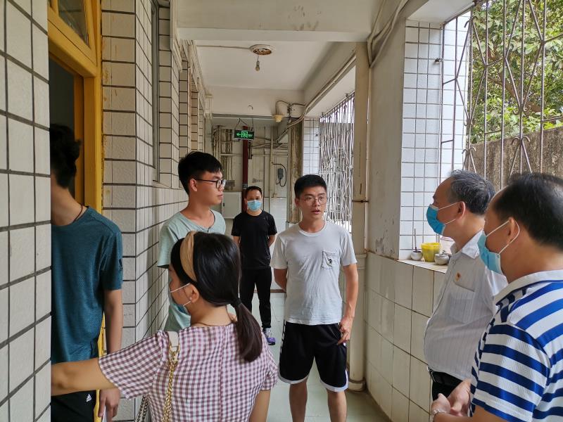 7月1日,滨海农业学院党委书记邓伟强、副书记陈嘉文带领学院党政办主任、辅导员到学生宿舍看望了刚刚返校的学院2020届毕业生。