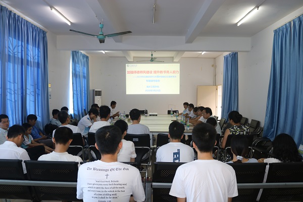 上午8点10分,在海滨教学楼212室,院长严谨以“加强师德师风建设、提升教书育人能力”为题目,为大家做纪律教育专题辅导报告,结合学院教学工作情况,较为详尽地讲解了学校“师德师风负面清单及师德师风行为处理办法”,号召大家学习恪守新时代教师职业行为十项准则,努力做学生心目中先进思想文化的传播者、党执政的坚定支持者和学生健康成长的指导者、引路人,把立德树人的工作做好做扎实,为培养德智体美劳全面发展的优秀人才和创建一流学院贡献智慧才华。