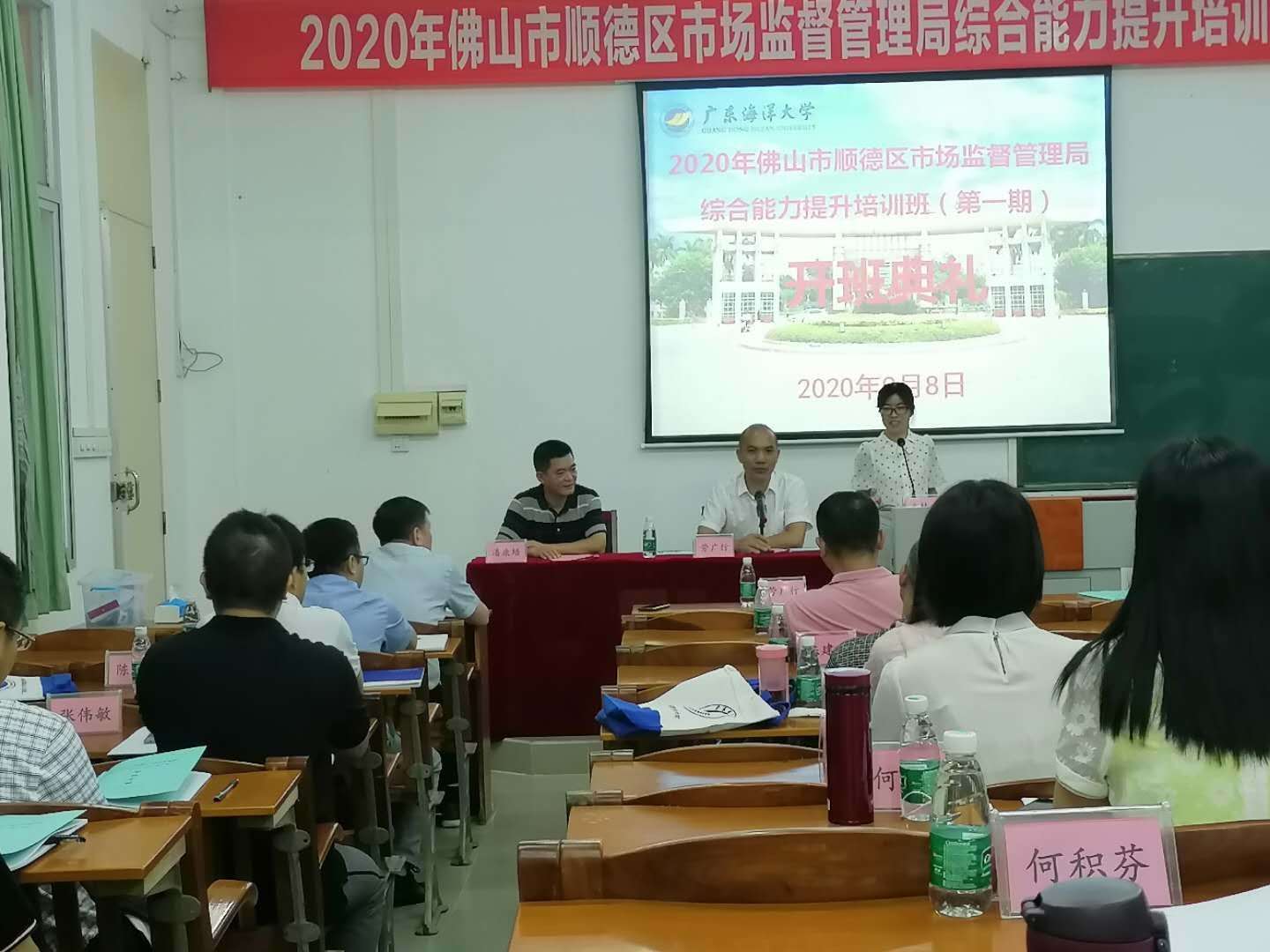 9月8日上午,佛山市顺德区市场监督综合能力提升班(第一期)开班典礼在开云官网霞山校区报告厅顺利举行。顺德区市场监督管理局劳广行局长、胡公会副局长出席开班仪式。继续教育学院副院长潘康培出席开班典礼并致欢迎词,开班典礼由继续教育学院王爱珍主持。