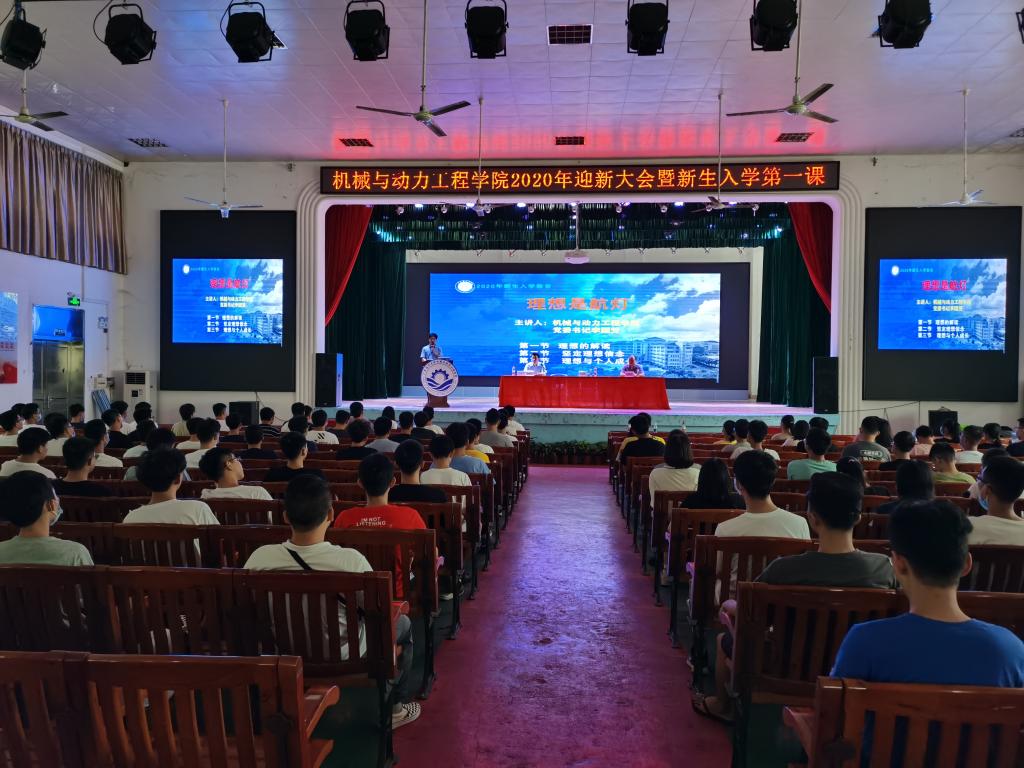 9月14号下午,机械与动力工程学院在湖光校区礼堂召开2020级新生迎新大会暨“新生入学教育第一课”。学院党委书记李国芳、院长俞国燕、党委副书记钟桂安、副院长刘海涛及各系主任、全体新生辅导员、班主任和2020级全体新生参加大会。因疫情防控需要,大会分两批进行。