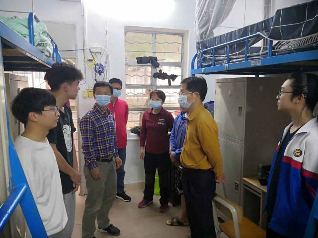 在走访过程中,邓伟仔细询问同学们的身体健康状况和假期学习情况,鼓励大家尽快适应学校的学习生活,调整心态、努力克服节后综合征。严谨与学生交流返校后的学习计划与课程安排等内容,提醒同学们要尽快回到新学期专业学习的轨道上来。林忠新细心查看返校学生的住宿及生活情况,提醒同学们注意宿舍卫生、保持宿舍干净整洁,防止细菌滋生,提升个人防护意识。
