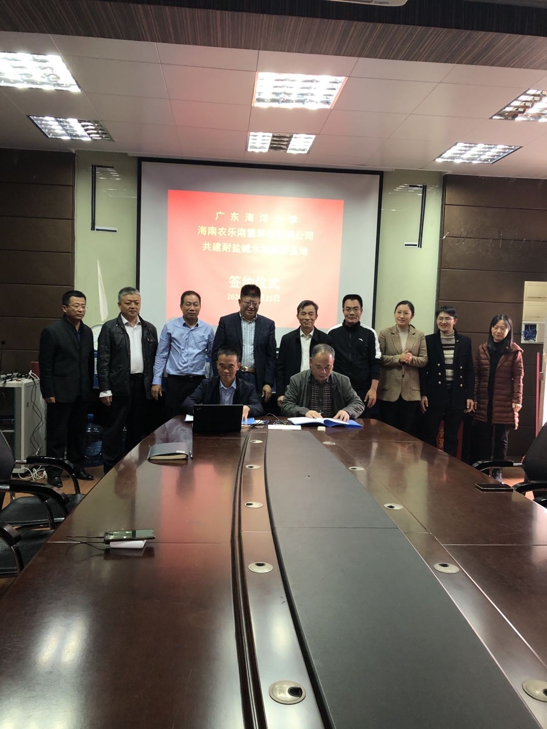 12月25日下午,滨海农业学院院与海南农乐南繁科技有限公司在兴农楼419会议室就共建耐盐碱水稻科研基地签订合作协议。海南农乐南繁科技有限公司总经理王仕明,学院党委书记邓伟强、部分老师参加会议,会议由学院作物学科带头人郑殿峰教授主持。