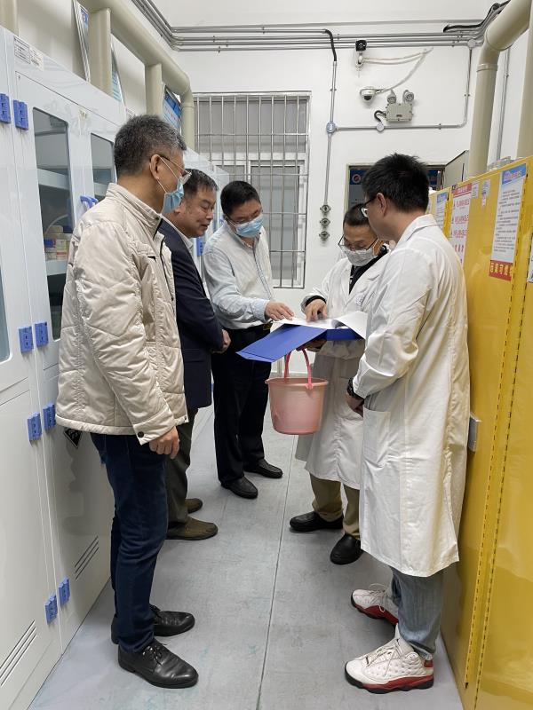 院领导一行通过听取工作汇报、现场察看、检查使用记录、与现场师生交流等方式,对实验中心的危化品管理、“三废”处理、实验室着装、大型仪器及特种设备使用、消防安全、人员教育、规章制度建设等情况进行了深入细致检查,逐一指出存在问题,要求实验中心负责人举一反三,认真组织排查隐患并限期整改,确保实验室场地、资产和人员安全。