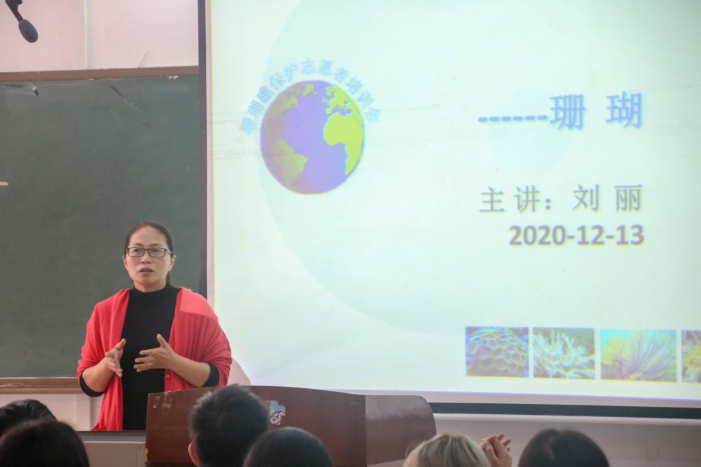 12月13日上午,水产学院在钟海楼04029举行“保礁护海,共守蔚蓝”海洋科普志愿者培训会。此次培训会由水产学院海洋生物系系主任刘丽教授主讲。