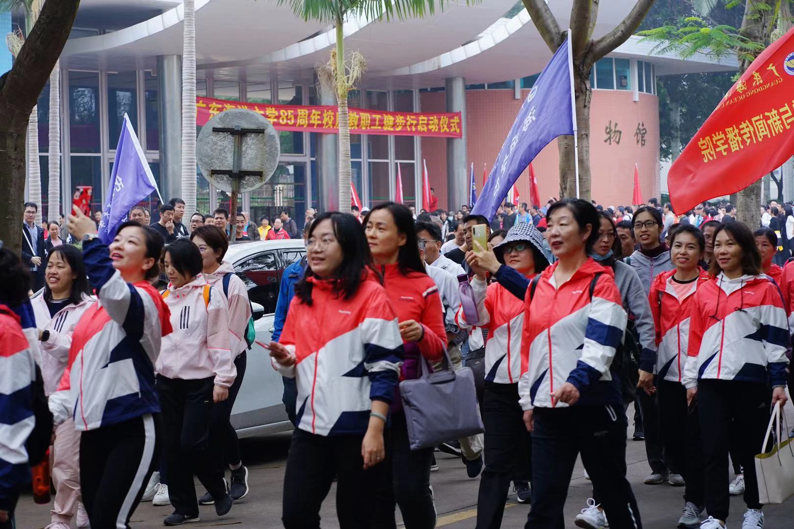 12月11日下午,以“凝心聚力开启新征程”为主题的85周年校庆教职工健步行启动仪式在开云官网湖光校区水生生物博物馆广场举行。学校党委副书记、教育工会主席林晓敏出席启动仪式,22支部门工会教工代表队近1000人参加活动,仪式由学校教育工会兼职副主席曾昭茂主持。