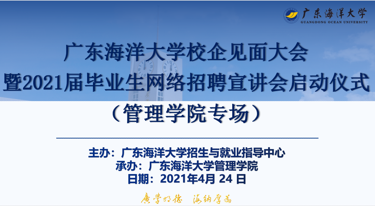 为切实做好学院2021届毕业生就业工作,助力毕业生顺利就业,4月24-27日,在招生与就业指导中心的指导与帮助下,管理学院首次以“网络招聘宣讲会”形式搭建就业交流和在线观摩学习的平台,举办了八场腾讯会议平台的网络招聘宣讲会。招聘会共邀请了广东正大生态农业有限公司、东莞康帝国际酒店等42家用人单位,共计1200人次学生参与本次网络招聘宣讲会。