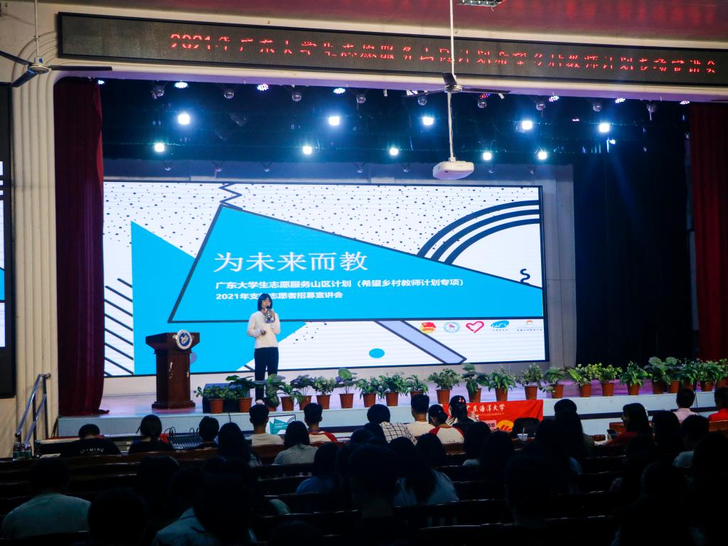 根据广东省希望工程服务中心工作部署,4月20日晚,校团委在湖光校区小礼堂举办2021年广东大学生志愿服务山区计划——“希望乡村教师计划专项”海大专场宣讲会。省项目办主管肖苑思、陈琳老师,在湛江支教的志愿者梁妙婷、陈智担任主讲嘉宾,学校400多名学生参加现场宣讲会。