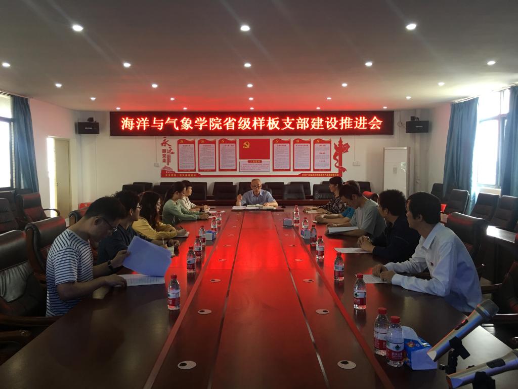 为深入开展党史学习教育和加强党支部建设,3月19日上午,海洋与气象学院党委在海科楼505会议室召开“省党建工作样板支部”建设推进会,学院党委书记陈晓、党委副书记刘宏英、组织员马登值、各党支部书记、海洋科学系教工党支部支委成员参会。