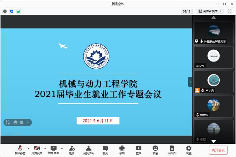 6月11日下午,机械与动力工程学院通过腾讯会议平台召开2021届毕业生就业工作专题会议,学院领导、各教学系主任、各专业负责人、全体辅导员及2021届毕业班班主任参加了会议,会议由学院党委书记李国芳主持。