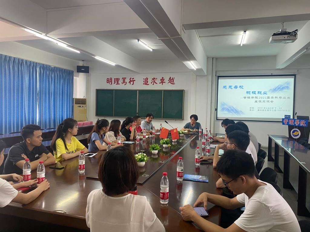 6月2日上午,管理学院在主楼1005会议室召开2021届毕业生代表座谈会。学院党委副书记吴少文、毕业班辅导员、 各专业毕业生代表20余人参加了座谈会。