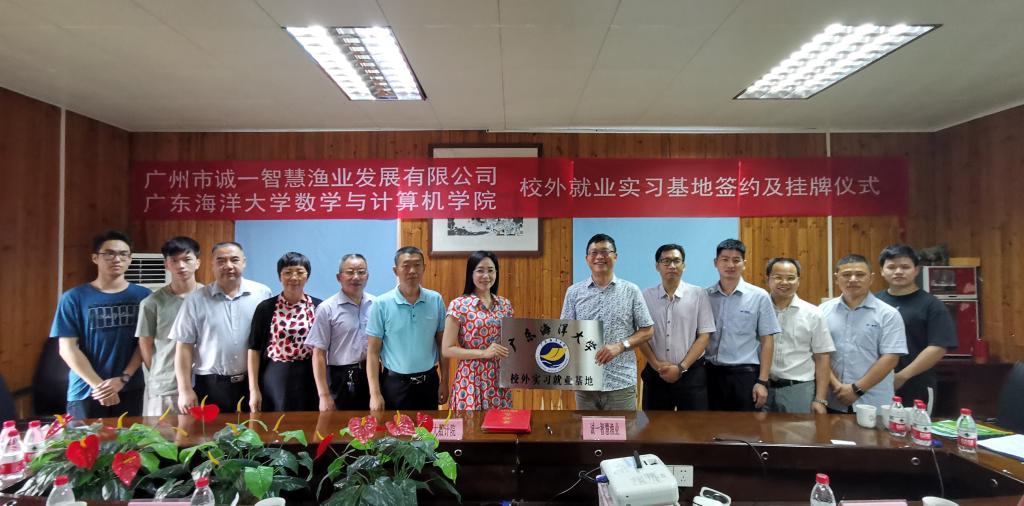 为了切实做好毕业生就业和实习工作,提高毕业生就业能力,加强人才协同培养,大力推动工程专业认证工作,7月17日—7月20日,数学与计算机学院党委书记谢仕义、院长彭小红、副书记周荣伟、副院长肖来胜、陈入云等一行8人赴广州走访了广东诚一集团、广州粤嵌科技股份有限公司、广州千锋科技有限公司、广东恒电科技有限公司、广州耀云软件科技有限公司等企业开展就业实习市场调研,与诚一集团旗下子公司广州市诚一智慧渔业发展有限公司签订了共建就业实习基地协议,并为企业授予了合作牌匾。