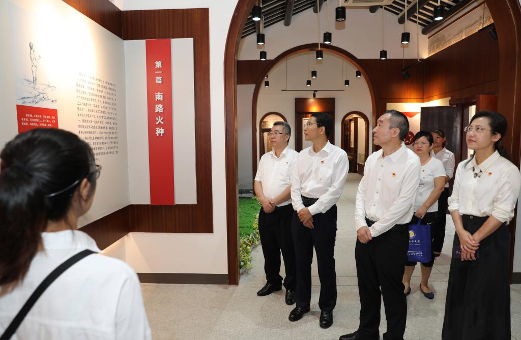7月22日上午,学校党委办统战部党支部和校团委党支部联合到湛江市遂溪县乐民镇开展党史学习教育主题活动,学校党委书记曹俊明,副书记林晓敏,遂溪县委常委、组织部部长吴秋文、乐民镇镇长林立、党委副书记洪悦英和两个支部党员参加了活动。