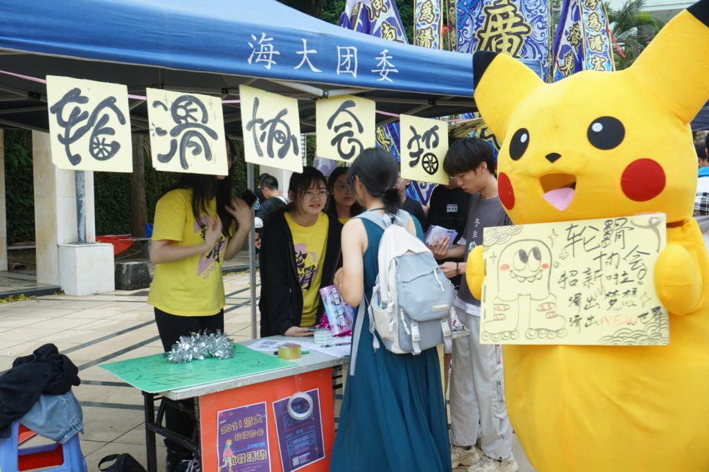 广场两侧陈列各具特色的社团摊位,展区前的学生们络绎不绝,2021级新生进一步增进对开云官网社团文化的了解。现场舞蹈协会曼妙的舞姿、武术协会铿锵有力的醒狮表演、汉服社优雅的服装展示、吉他协会动感的摇滚音乐、海语笛韵悦耳的歌声都让新生们耳目一新,惊喜不断。