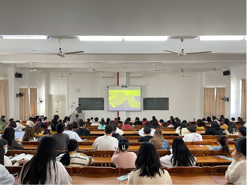 宣传活动包括预防艾滋病宣讲会和户外宣传活动两部分。宣讲会在湖光校区第二教学楼举行,约有150名师生参加会议。宣讲会上,湛江市疾控中心艾滋病预防控制科副科长杨文汉作题为“大学生如何预防艾滋病”的专题讲座,围绕艾滋病流行情况、传染源、传播途径以及高危险行为后的应急处置等内容进行详细讲解。户外宣传活动在第三食堂门前广场进行,活动现场悬挂宣传横幅、发放宣传册、开展有奖问答、播放宣传视频,学校青志联医疗保健队表演了模拟艾滋病病毒传播的体验游戏——野火游戏,丰富多彩的活动让大学生们亲身体验到了艾滋病病毒传播速度之快、方式之多、范围之广的重大危害。