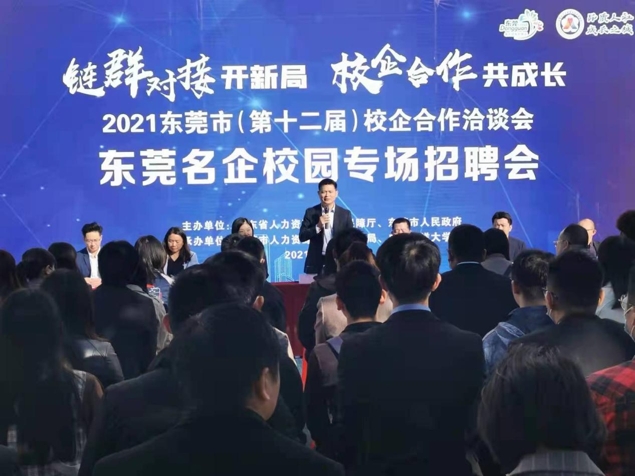 侯首文介绍了东莞市新出台的就业创业政策,并期待未来与学校有更大合作空间。
