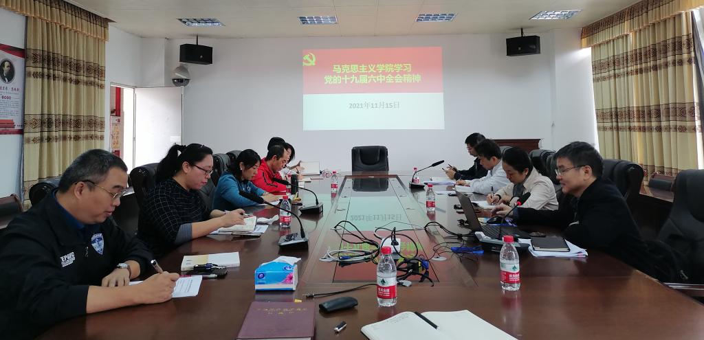 11月15日上午,马克思主义学院召开学院党总支理论学习中心组(扩大)会议,专题学习党的十九届六中全会精神。学院党总支书记陈青松主持会议,学院领导班子成员、教研室主任、各党支部书记、院党政办主任等参加会议。