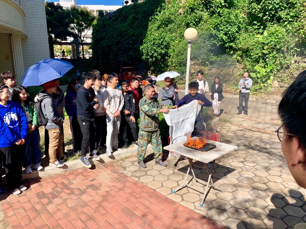上午10时,图书馆内响起的警报声,各位老师立即到达指定岗位。孙学政首先提醒读者这是消防安全演练,请同学们不要惊慌,携带自己贵重物品,按照工作人员指引,从消防通道向馆外迅速疏散。全馆师生有序地撤离至馆外指定位置,从警报响起到演练结束历时7分钟,共1064人次参加本次演习。保卫处安全管理科科长黄真祥为师生详细介绍干粉灭火器和水枪等消防器材的使用方法,并现场进行演示,同时指导在场师生如何使用灭火器灭火,进一步深化师生对消防安全的认知。