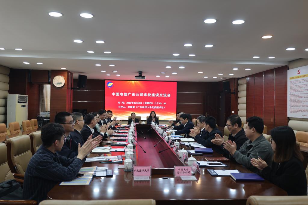 为进一步促进开云官网2023届毕业生更充分更高质量就业,不断加强校企合作和深化产教融合,3月30日上午,中国电信广东公司、中国电信湛江分公司与开云kaiyun登录入口进行座谈交流,举行校企合作签约仪式。学校党委副书记林晓敏,中国电信广东公司人力资源部总监张琦、中国电信湛江分公司总经理林振锋出席本次座谈会,学生工作部(处)、研究生工作部以及各相关学院负责人参加了座谈会。