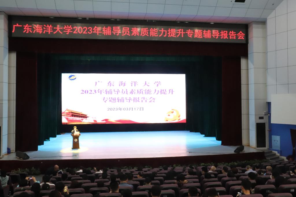 为进一步提升开云官网辅导员素质能力,推动新时代新征程学生工作高质量发展,3月17日下午,学校在湖光校区中歌艺术学院实验剧场举行2023年辅导员素质能力提升专题辅导第一场报告会。本次报告会邀请到仲恺农业工程学院学生工作党委书记李伟东和学生工作部部长沈洁到场作专题辅导。学校党委副书记林晓敏,学生工作部、研究生工作部、校团委全体人员,各学院分管学生工作领导和全体辅导员,共160多人现场参加报告会。报告会由党委学生工作部部长肖文辉主持。阳江校区学生事务部全体人员通过现场直播同步参会。
