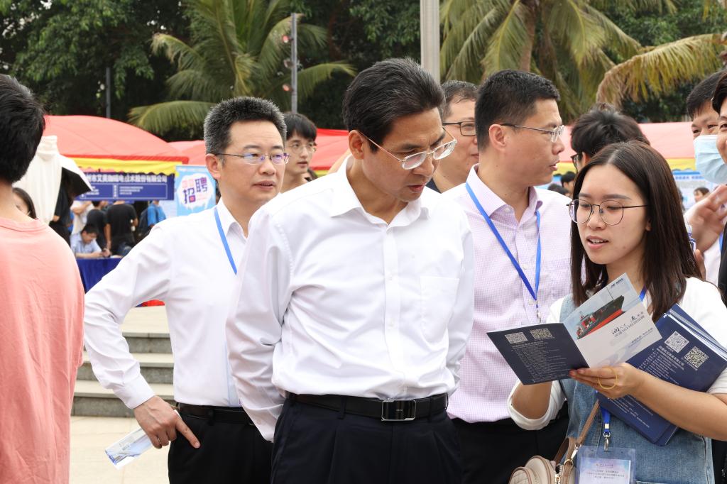 在招聘会现场,学校党委副书记林晓敏在学生工作部、研究生工作部等部门负责人的陪同下,与各用人单位代表进行了深入交流,了解企业用人需求,并对现场毕业生进行了切实有效的指导。此外,各学院学生工作领导和辅导员老师也参加了本次活动。现场人头攒动,气氛热烈,吸引了一大批毕业生前来与用人单位进行交流,寻求心仪的工作岗位。面对前来应聘的毕业生,招聘人员认真查看简历信息,了解求职意向,耐心回答毕业生提出的问题。