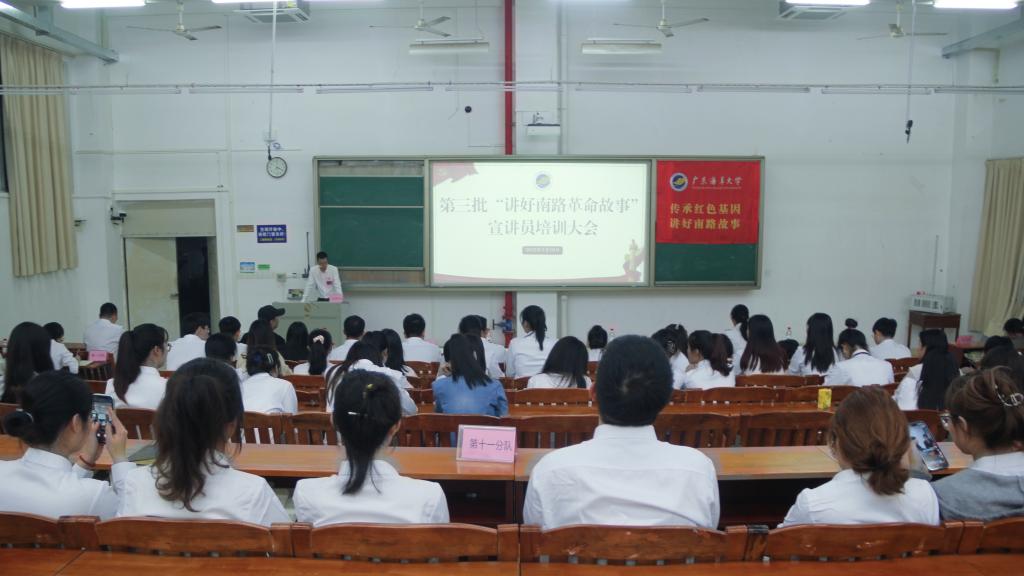 为进一步提高“讲好南路革命故事”宣讲员队伍素质,让宣讲团成员系统了解南路革命史,打造好新一批“会讲、能讲、讲得好”的宣讲员队伍,3月10日晚,第三批“讲好南路革命故事”宣讲员培训大会在湖光校区明德楼B5203举行。中歌艺术学院吴炜教授、马克思主义学院谭月清副教授到场授课,第三批“讲好南路革命故事”全体骨干教员和宣讲员参加大会。会议由第三批“讲好南路革命故事”副总指导老师、研究生党政办公室主任陈淦添主持。