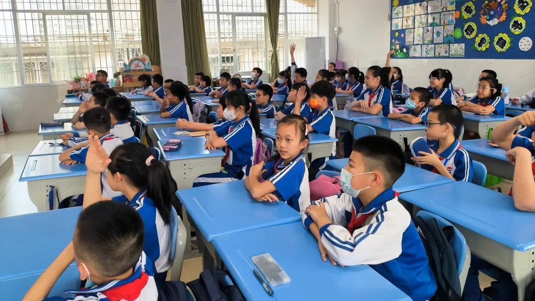 在课堂中,小学生们积极举手回答发表自己的见解,争先恐后表达自己的想法,科普课堂氛围逐渐浓烈。
