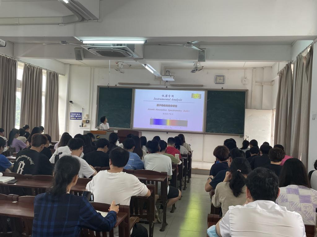 卢虹玉老师讲授了《仪器分析》中的“原子吸收光谱的产生、发展、主要结构组成部分、原理和应用”内容,她以故事和案例形式讲述原子吸收光谱学的产生和发展,激发学生的学习兴趣,借此引导学生积极思考并归纳总结原子吸收光谱仪的原理、结构组成和应用,同时将课程中的重点、难点通过对比的方式帮助学生更好理解记忆,其生动讲解取得了良好的课堂效果。