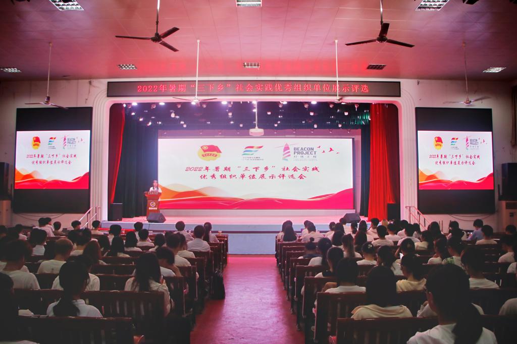 为更全面生动展示各学院在2022年暑期“三下乡”社会实践的成果,提高各学院组建团队开展社会实践活动的积极性,校团委于4月3日晚在湖光校区东区小礼堂开展2022年暑期“三下乡”社会实践优秀组织单位展示评选会。参与本次评选会的有校团委郑俊儒老师、校团委社会实践部、各学院实践部代表、优秀组织单位展示发言人、优秀团队代表以及学生代表近300人。
