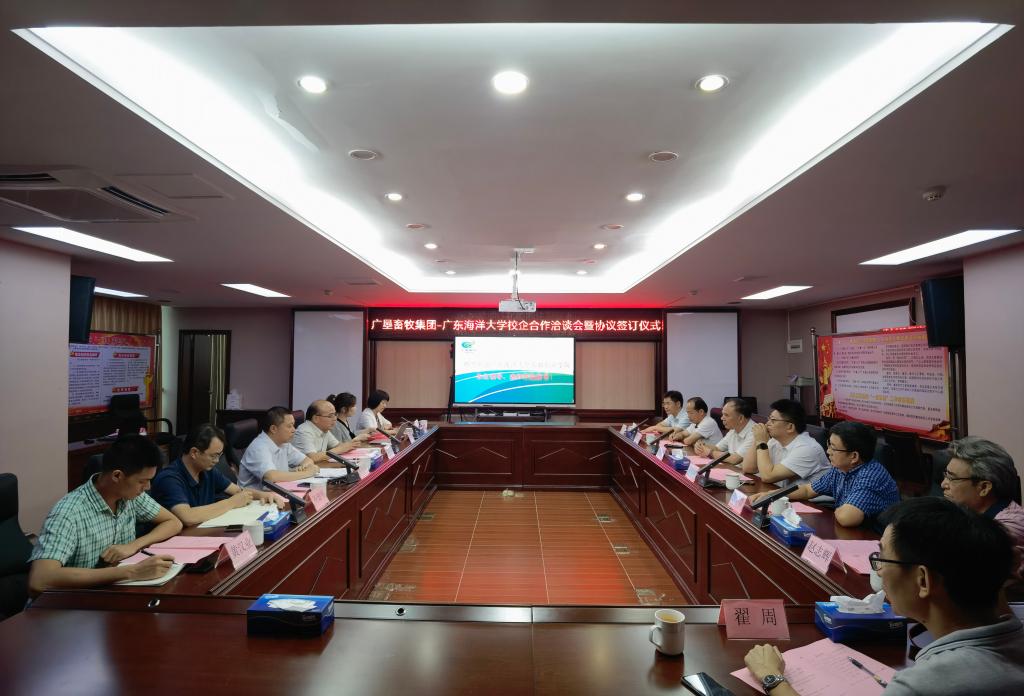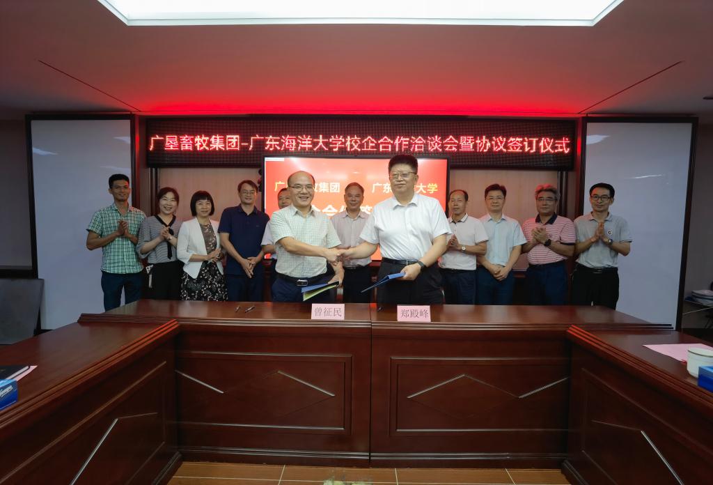 7月7日下午,滨海农业学院党委书记邓伟强、院长郑殿峰率班子成员及畜牧学科教授赵志辉等一行到广东广垦畜牧集团,与集团总经理、党委副书记曾征民,湛江农垦畜牧公司总经理黄如渠等洽谈校企合作事宜,并与广垦畜牧集团签订了合作协议,建立了校企合作关系。