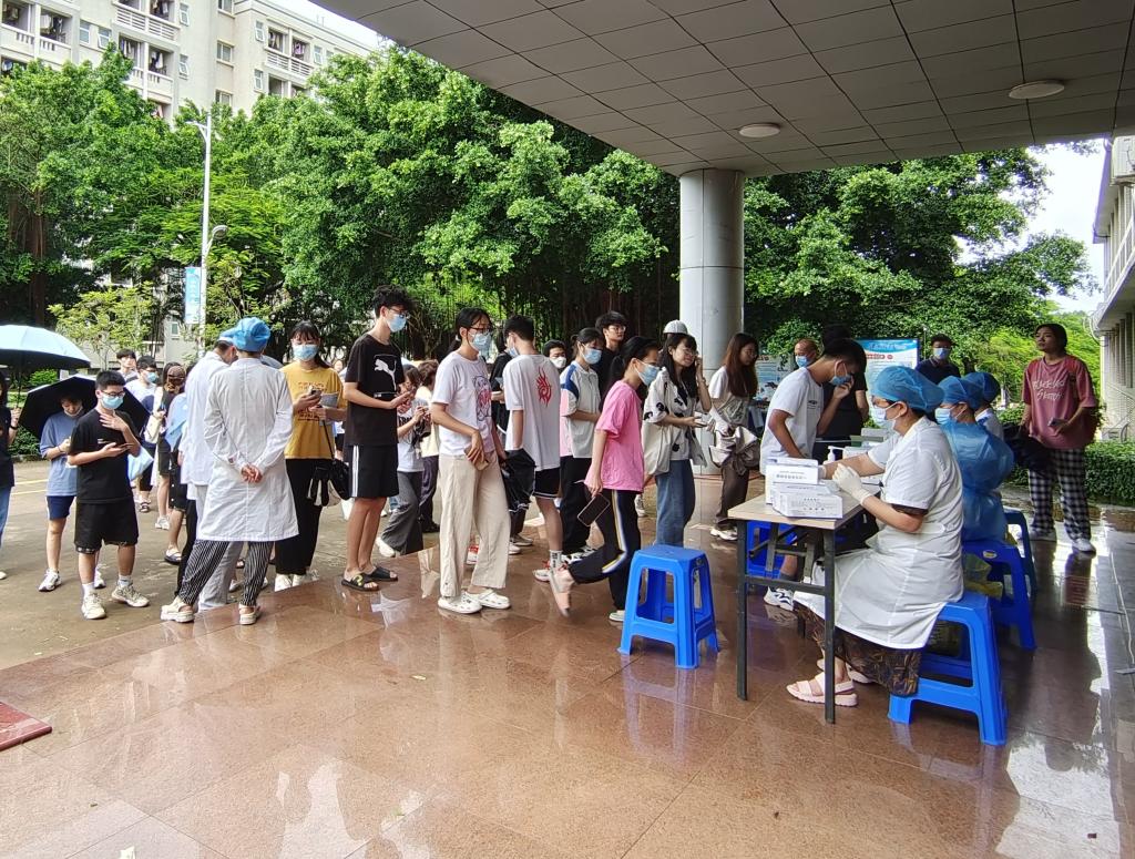 为方便师生离校回家,共同保障师生的安全和健康,7月5日至7日中午,校医门诊部在湖光校区为师生开展核酸检测。