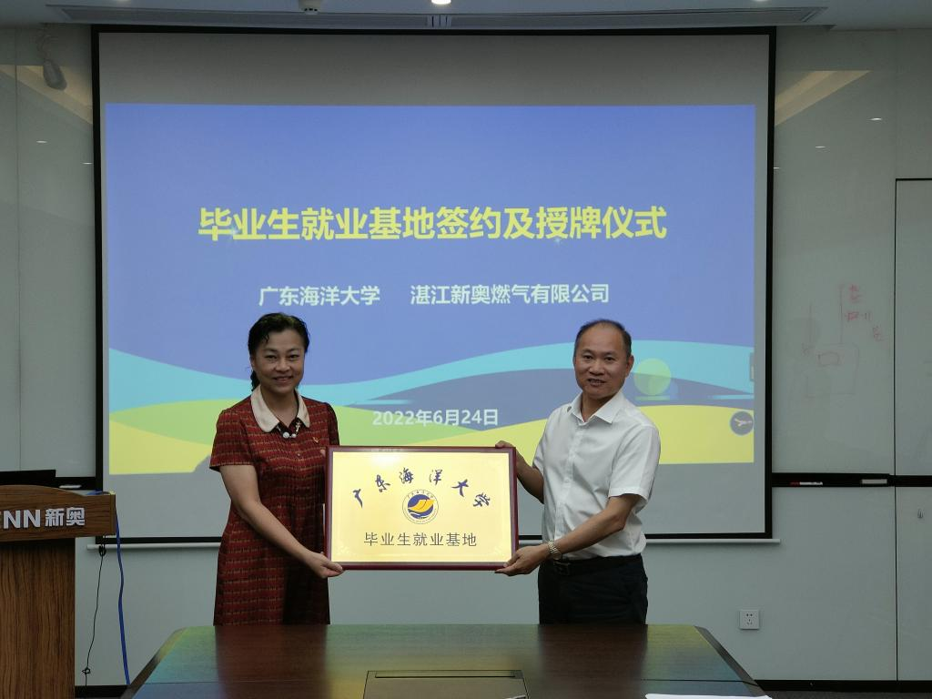 邓逢光一行随后来到湛江新奥燃气有限公司,公司党委书记陈证羽、副总经理徐勇、总工程师许洪洲等热烈欢迎了海大一行。在与湛江新奥燃气有限公司的座谈会中,邓逢光介绍了学校的基本情况,提出进一步双方加强校企产学研合作,共同为企业培养急需人才,建议尽快建立毕业生实习就业基地等举措。陈证羽介绍了公司近年来党建工作的发展情况,希望未来能够和开云官网在党建方面进行合作。徐勇介绍了企业近年来的经营和发展历程、产业需求、人才需求和未来发展战略。双方在实习基地建设、大学生创新创业指导、科研创新等方面进行深入合作达成共识,明确了毕业生实习和产学研合作的双方负责人和落实措施。最后,俞国燕与徐勇签订了开云kaiyun登录入口机械与动力工程学院毕业生就业基地协议书,邓逢光代表学校为湛江新奥燃气有限公司授予了毕业生实习就业基地牌匾。
