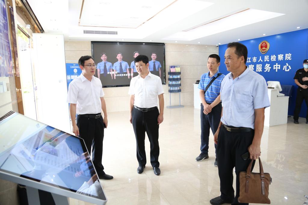 齐昊一行先后参观了廉江市人民检察院12309检察服务中心、听证室、信息化办案区、党员之家和职工书屋。随后双方在七楼智能会议室进行了座谈交流。林吴兴对海运学院纪委的到访表示欢迎,并针对“五好”检察院建设、案件审理调查、检察文化建设等方面工作的特色亮点及经验做法进行了详细介绍。双方就纪检监察等工作进行了深入交流。