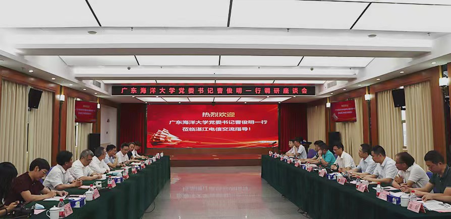 为进一步贯彻落实教育部“高校书记校长访企拓岗促就业专项行动”要求,全面深化校企合作、供需对接,6月24日,学校党委书记曹俊明带队,学校党委常委、组织部部长林宇,党委办公室主任王明对,招生与就业指导中心主任肖文辉以及电子与信息工程学院、机械与动力工程学院、数学与计算机学院、经济学院等学院领导一行9人到中国电信湛江分公司调研。