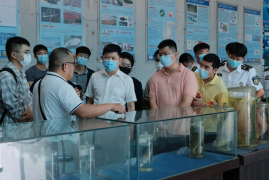 在初庆柱生动有趣的讲解下,海运学院师生、中海油服湛江分公司团委一行参观了鱼类、贝类、虾蟹类、海藻类等数间陈列室。同学们既见识了大量珍稀海洋生物标本,又学到了海洋生物保护知识。