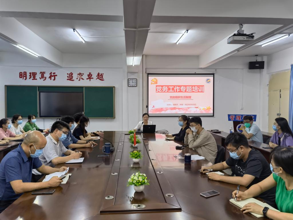 第一场:5月25日,党务工作专题培训在广学楼(主教学楼)1005会议室进行,学院党委副书记曾艳芳作专题辅导报告。曾艳芳重点从党支部组织生活相关要求、“第一议题”制度、党支部各类会议记录要素等几个方面,结合基层党务工作中常见的问题,开展范例、案例分析,逐一进行讲解、辅导。学院党委书记李育芳作总结发言时强调,巡查整改工作是一项非常重要的政治工作,学院党委高度重视,细化落实整改方案,精心组织安排系列培训,补充短板,解决工作中的薄弱环节,强化全面从严治党,以此推动学院事业高质量发展。