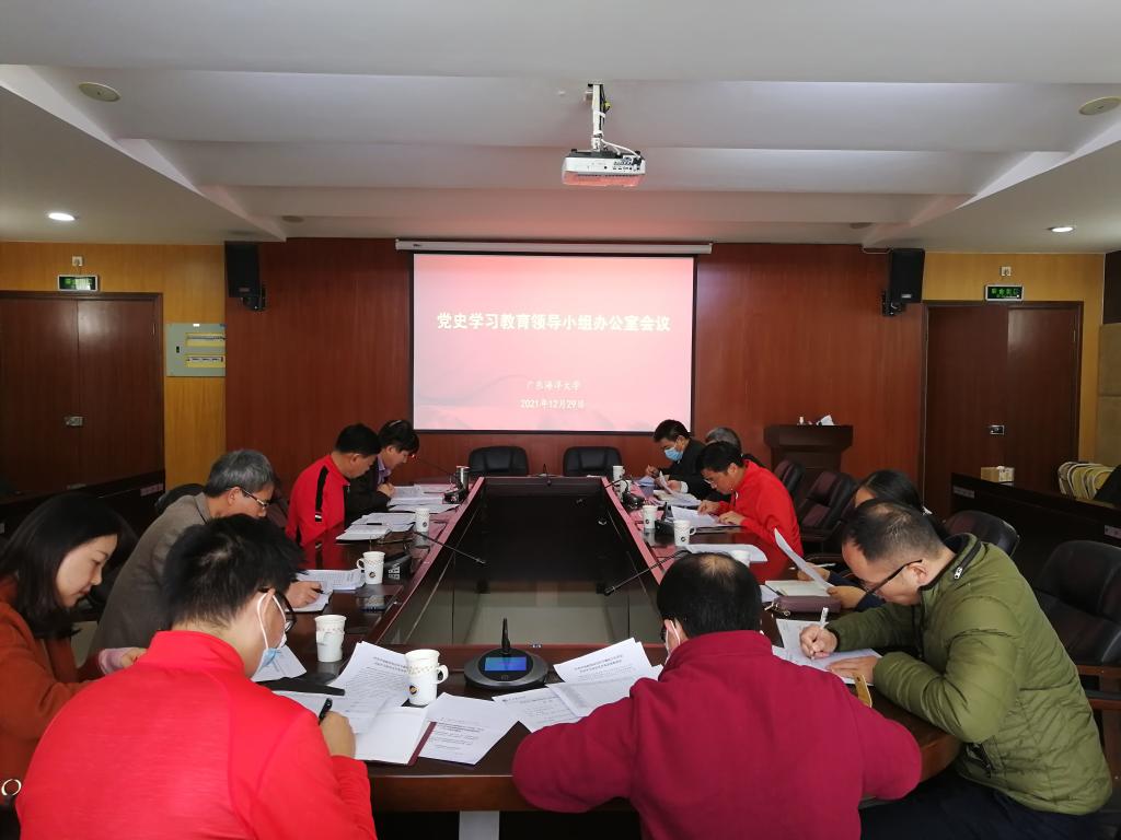 12月29日上午,副校长、党委党史学习教育领导小组办公室主任刘东超在湖光校区行政楼四楼会议室主持召开党史学习教育领导小组办公室会议,学习贯彻上级党史学习教育有关文件精神,研究部署党史学习教育总结工作。党史学习教育领导小组办公室常务副主任林宇出席会议,办公室全体成员参加会议。