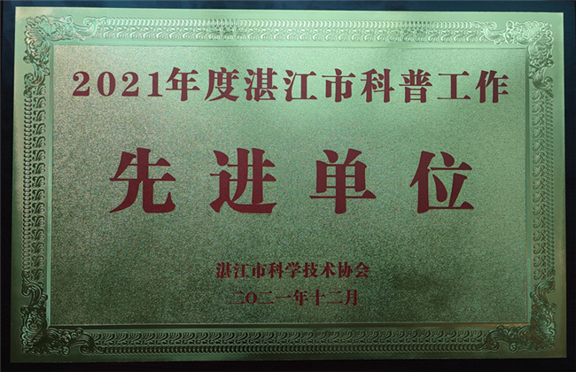会上,为表扬先进,树立典型,激励广大科普工作者做好新时代科学技术普及工作,湛江市科协对10个科普工作先进单位以及51名科普工作先进个人进行了表彰。开云官网水生生物博物馆获得湛江市2021年度科普工作先进单位,初庆柱同志获得湛江市2021年度科普工作先进个人。