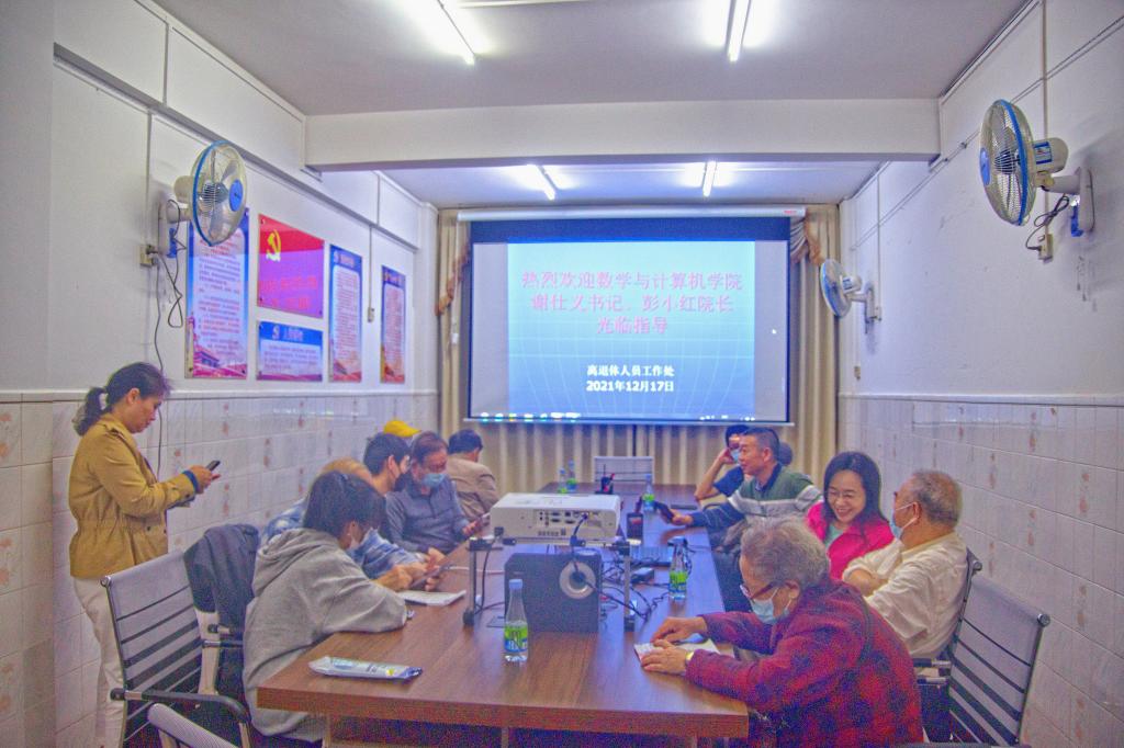 12月16、17日下午,由离退休人员工作处、数学与计算机学院联合开展的老年人智能手机运用现场培训在霞山校区离退休人员活动中心会议室举行,数名数学与计算机学院师生现场一对一指导离退休老人使用智能手机,同时播放数学与计算机学院王晗老师与学生录制的微信使用教学视频。17日下午数学与计算机学院党委书记谢仕义、院长彭小红到场看望师生并亲自指导老人使用手机。