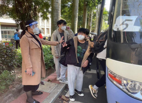 由学院党委书记王海燕带领的学工队伍已经早早来到了送考现场,确保每位考生上对车、走对路,全体辅导员为考研考生送行,班主任老师也来到现场为学生送上鼓励。15时,水产学院安排的6辆爱心送考专车全部停靠在湖光校区校园林荫大道,送考车依次编号排列,整装待发。