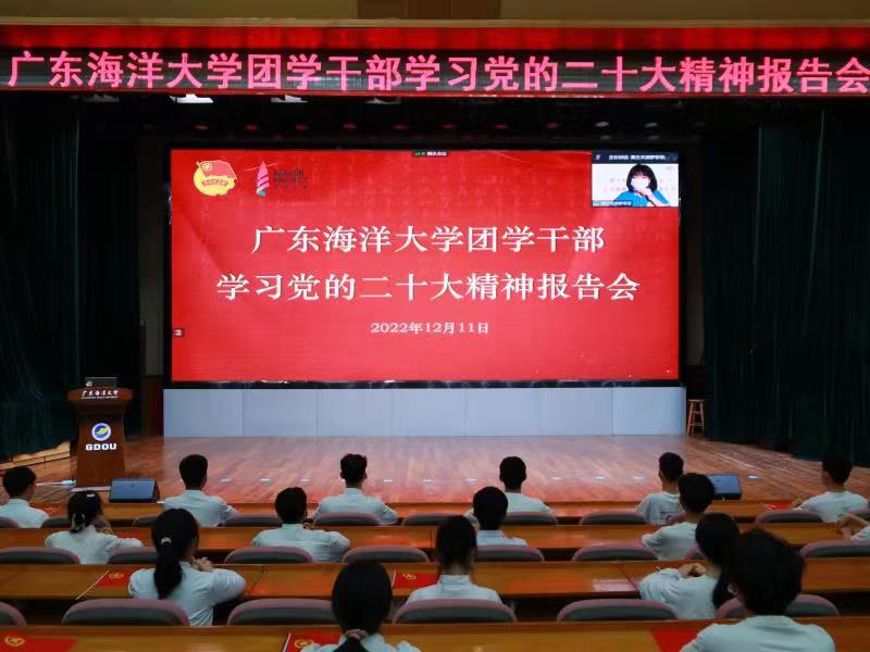 为深入学习宣传贯彻党的二十大精神,12月11日下午,在湖光校区广学楼多功能厅举行开云官网团学干部学习党的二十大精神报告会,校团委书记郑一鸣主持会议。本次报告会邀请了广东省团校(广东青年政治学院)讲师团张夏妮老师线上为同学们授课,报告会采取线上线下相结合的方式进行,其中50名学生干部在多功能厅线下学习,返家团学干部、第十三届“青马工程”和第四届“鸿鹄计划”骨干培训班全体学员在线上学习。报告会共约350人参加。
