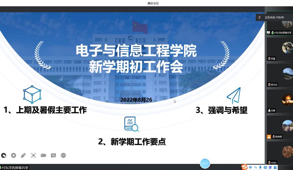 8月26日下午,电子与信息工程学院线上召开新学期全体教职工大会。学院党政领导及全体教职工参加会议。会议由学院党委书记宋雅主持。