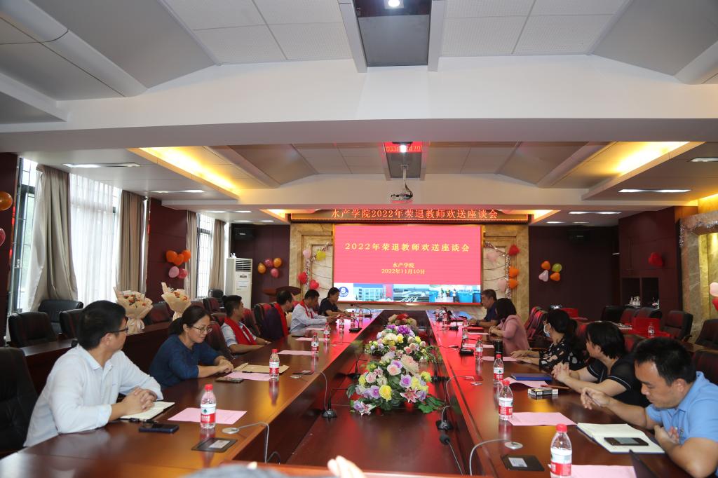 11月16日下午,水产学院在水产楼216举行2022年“光辉岁月·感恩有您”荣退教师欢送座谈会,学院党委书记王海燕、院长李广丽、副院长申玉春、邓岳文和杨奇慧,退休教师陈刚教授、杜晓东教授、黄翔鹄教授和系(办、中心)正副主任、教师代表等近20人参加了座谈会。王海燕主持会议。