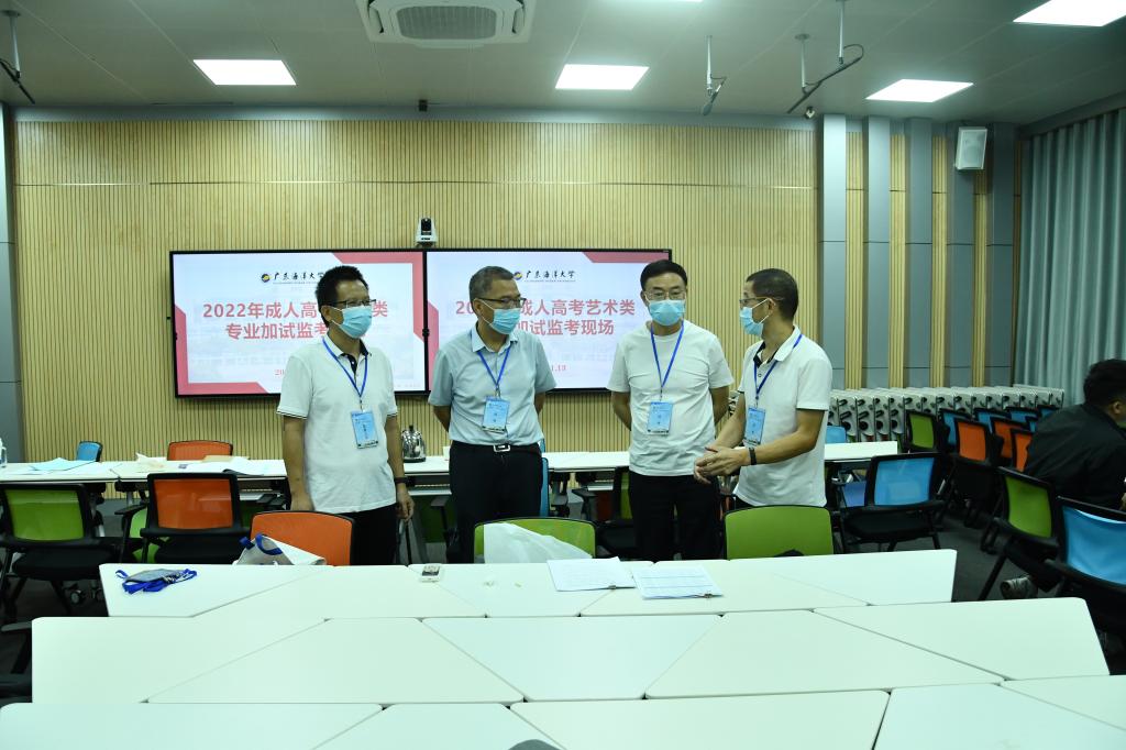 11月13日,开云官网2022年成人高考艺术类专业加试在线上进行,此次考试共有考生60人,共设置6个线上考场,开云官网监考现场设在湖光校区钟海楼03019。学校党委常委、组织部部长林宇,纪委副书记、纪检监察室主任曾庆新,教育信息中心主任张光亚、继续教育学院院长安立龙到监考现场巡考,在详细了解考试流程、设备保障、安全监控等情况后,进入远程考试监考现场查看考试情况。