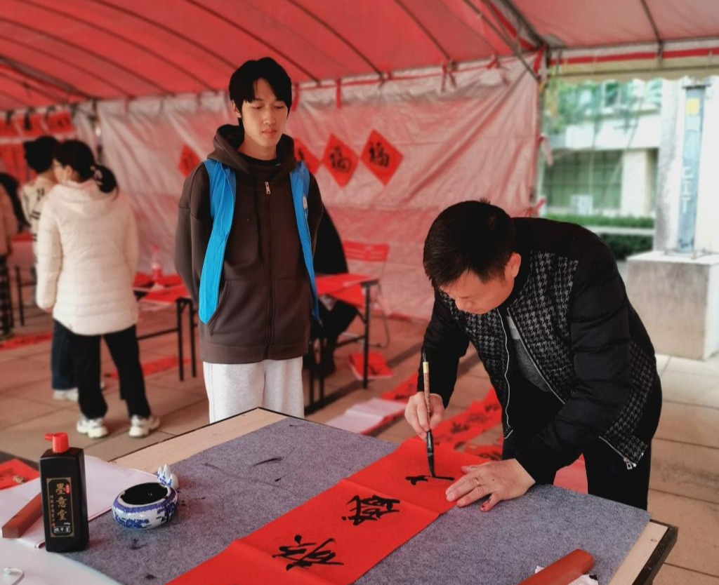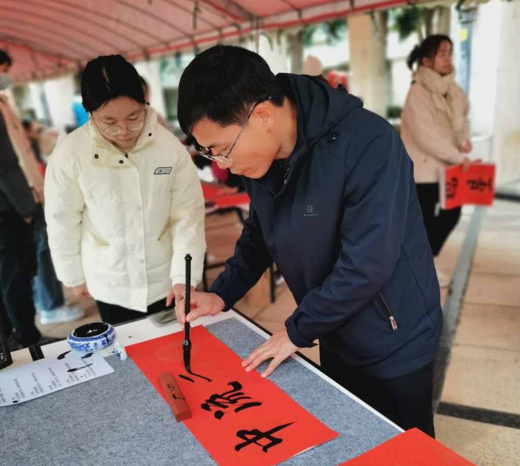 书写春联送祝福活动在寒冷的冬日给师生营造了健康祥和、积极向上的文化氛围,也是传承中华优秀传统文化、坚定文化自信的一次实践体验。