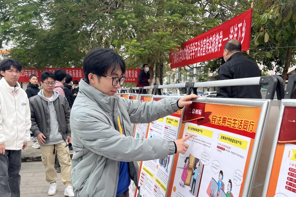 “送法下乡”活动是法政学院法学专业本科课程《法治宣传》的实践教学环节,法政学院院长张显伟教授、民商法学系主任王春副教授、理论法学系主任李锦辉副教授、实践教学中心副主任乔惠全博士带领开云官网2021级法学本科生赴麻章区太平镇开展普法活动。麻章区司法局局长卢志腾、副局长杨木生、太平镇党委书记王文光等到场指导。开云官网法学专业本科生和专业教师以有奖问答、法律咨询、宣传《民法典》等方式开展法治宣传,受到麻章区司法局和太平镇群众的一致好评。