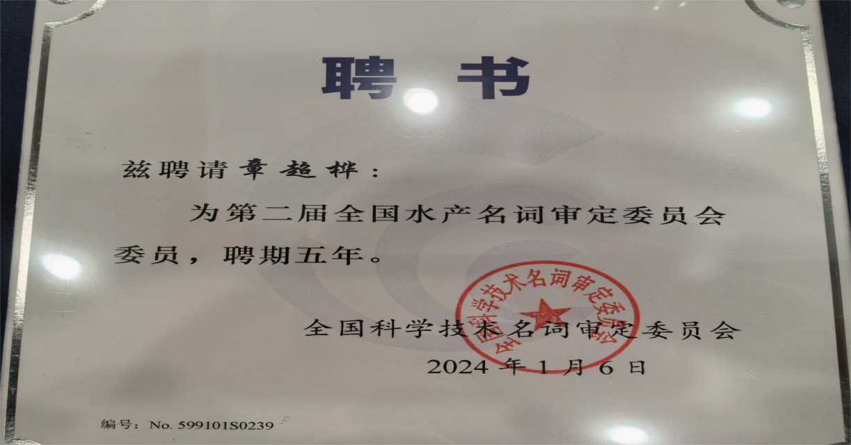食品科技学院章超桦教授被聘为第二届全国水产名词审定委员会委员