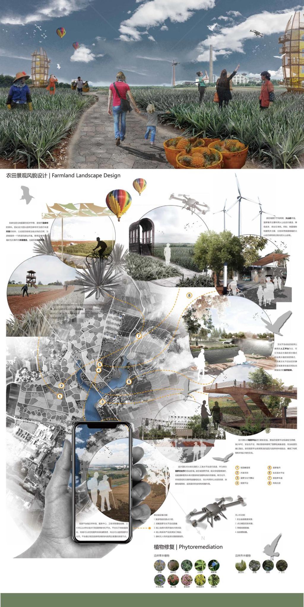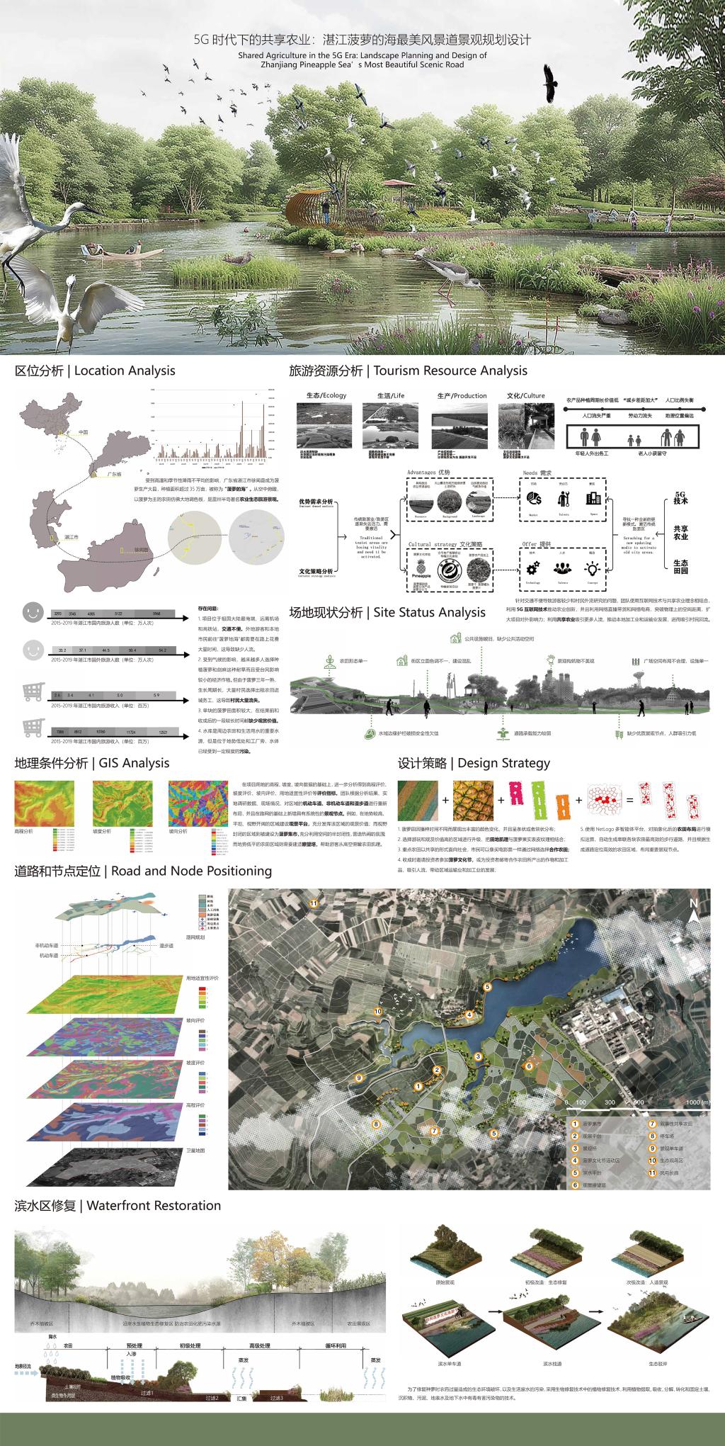 高校组一等奖作品:“5G 时代下的共享农业:湛江菠萝的海最美风景道景观规划设计”